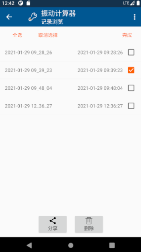 长按测试项目将切换至多选模式,在多选模式中可对多个测试项目进行删除和分享。点击“完成”返回单选模式。