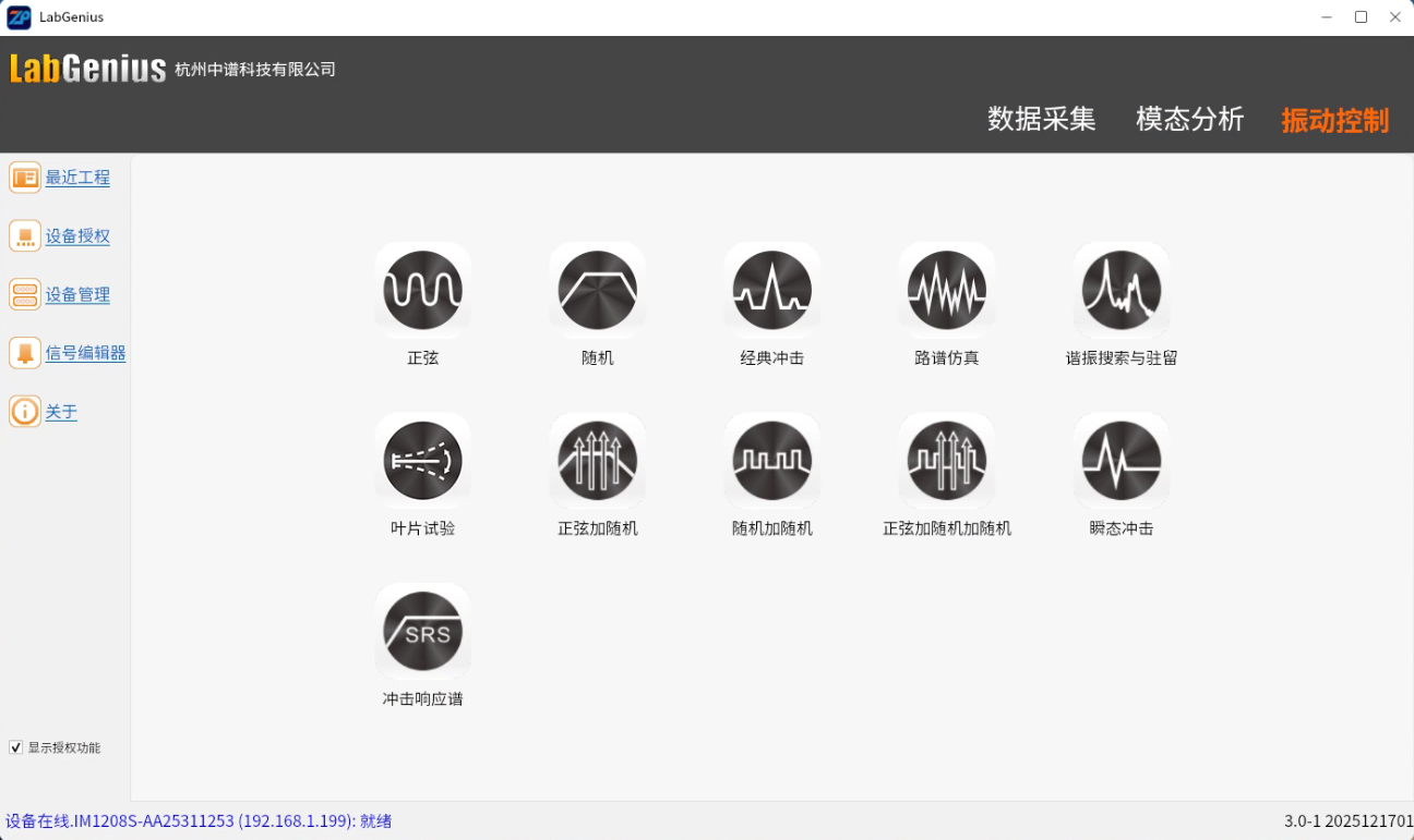 系统软件深度适配信息技术应用创新操作系统,操作简便,每个试验功能的主界面在不同操作系统下都类似,能够满足多样化的数据采集、振动控制及模态测试需求。