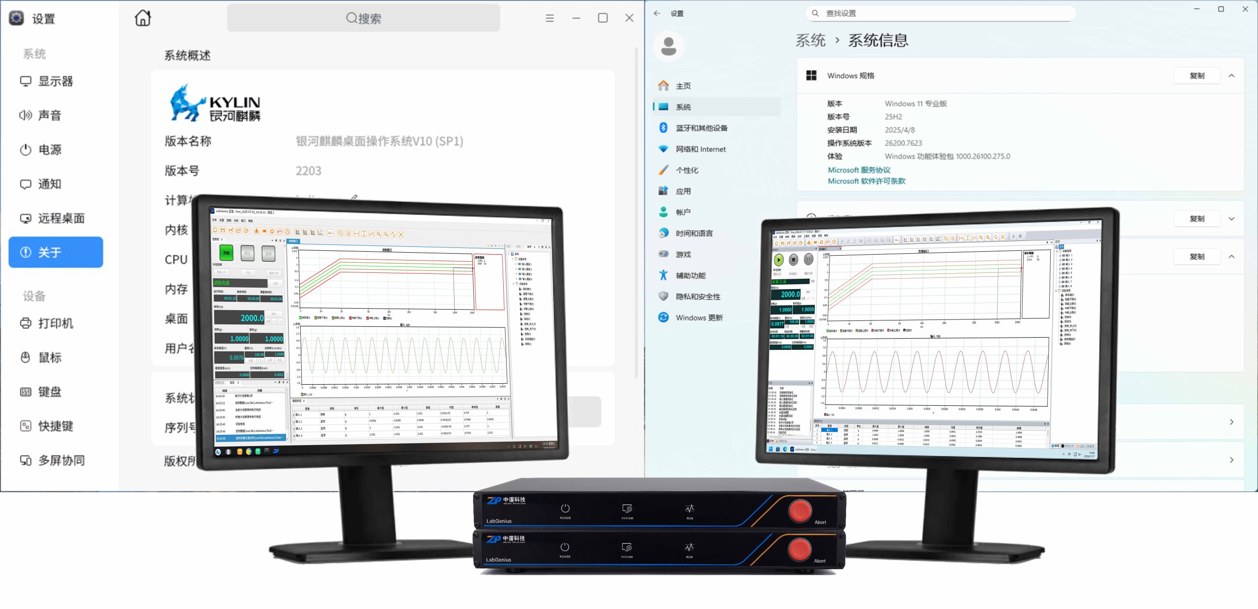 针对信创环境下的适配痛点,中谱科技自主研发LabGenius跨平台操作系统,实现了软硬件设备在国产操作系统和Windows系统的多平台测试支持。
