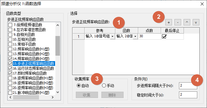 - 步进频率间隔大于:新收集的频率与上一次的频率差应大于多少Hz
