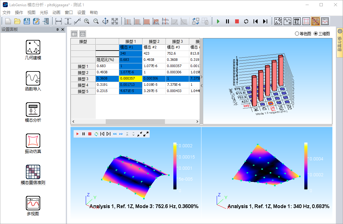 - 模态分析:管理并执行各分析,可同时进行多个不同输入、不同参数的模态分析