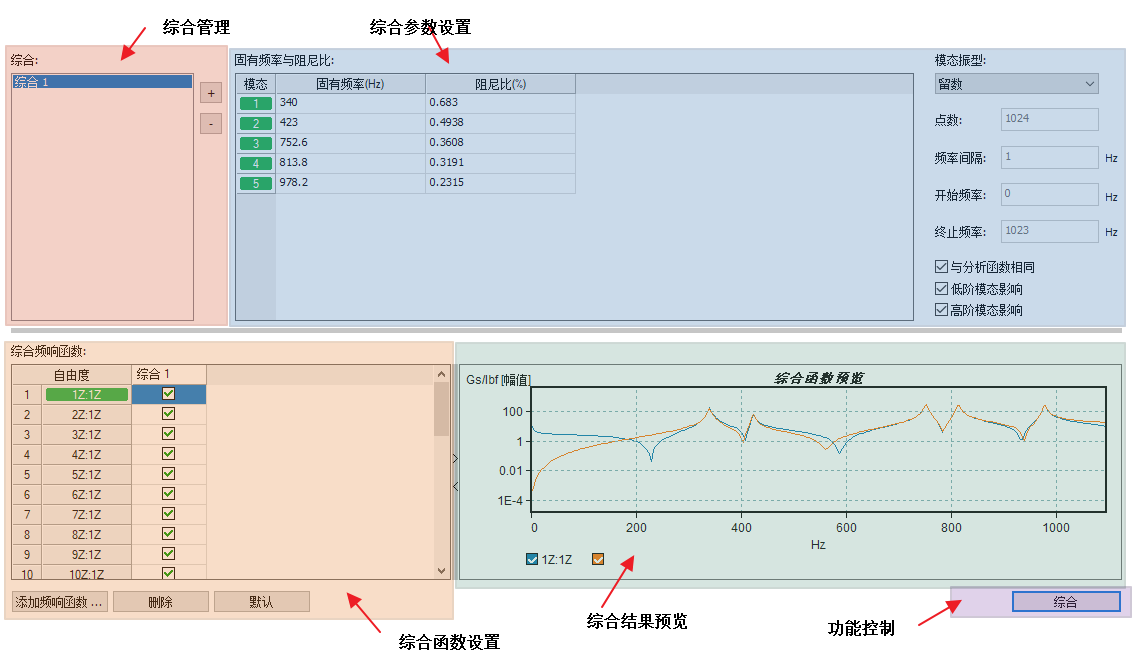 函数综合主要用于设置所需计算的函数,计算所用极点、振型,并执行综合计算。