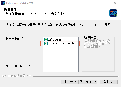 在程序安装时请勾选"Test Status Service",并保证当前系统为Windows10及以上。